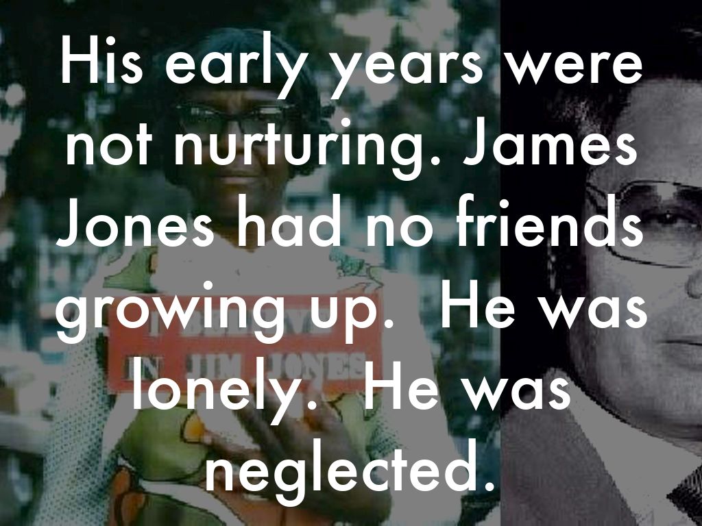 His early years were not nurturing. James Jones had no friends growing up. He was lonely. He was neglected.