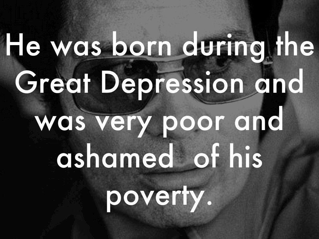 He was born during the Great Depression and was very poor and ashamed of his poverty.