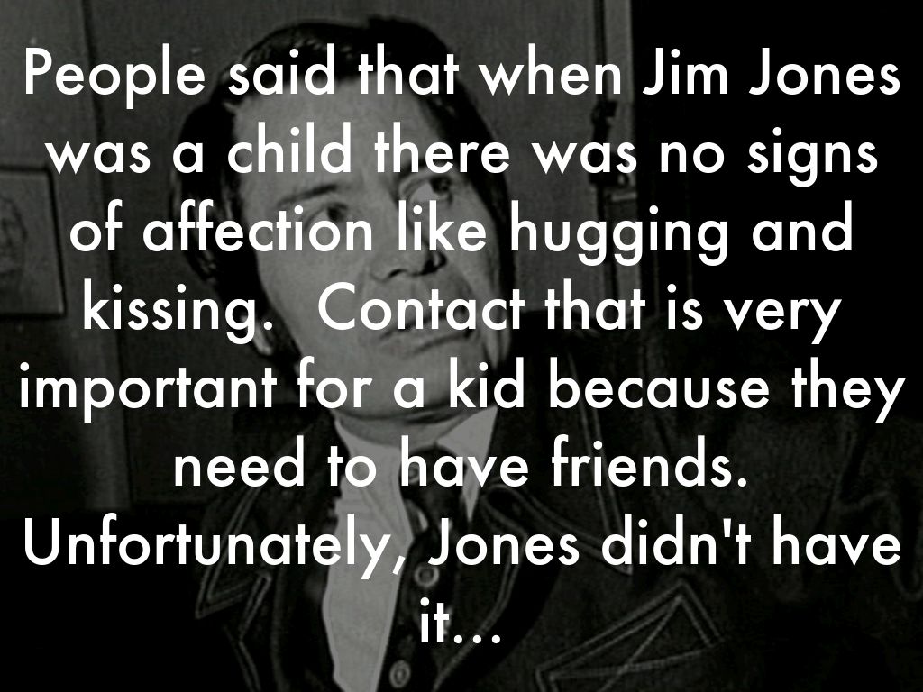 People said that when Jim Jones was a child there was no signs of affection like hugging and kissing. Contact that is very important for a kid because they need to have friends. Unfortunately, Jones didn't have it...