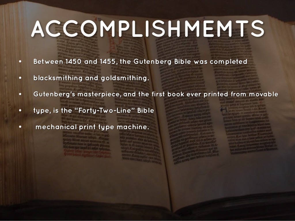 Between 1450 and 1455, the Gutenberg Bible was completed