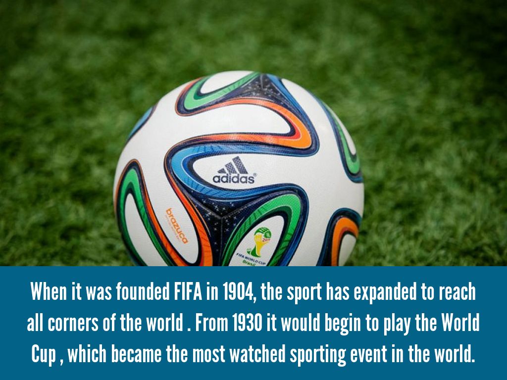 When it was founded FIFA in 1904, the sport has expanded to reach all corners of the world . From 1930 it would begin to play the World Cup , which became the most watched sporting event in the world.