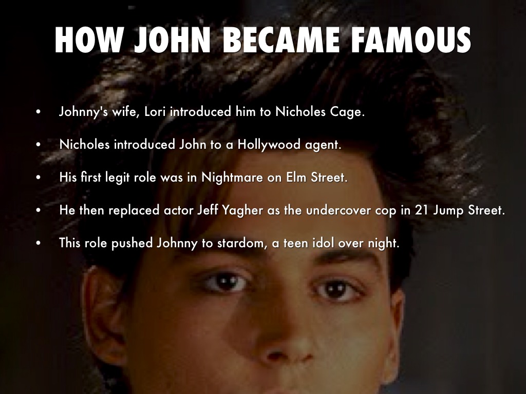 Johnny's wife, Lori introduced him to Nicholes Cage.