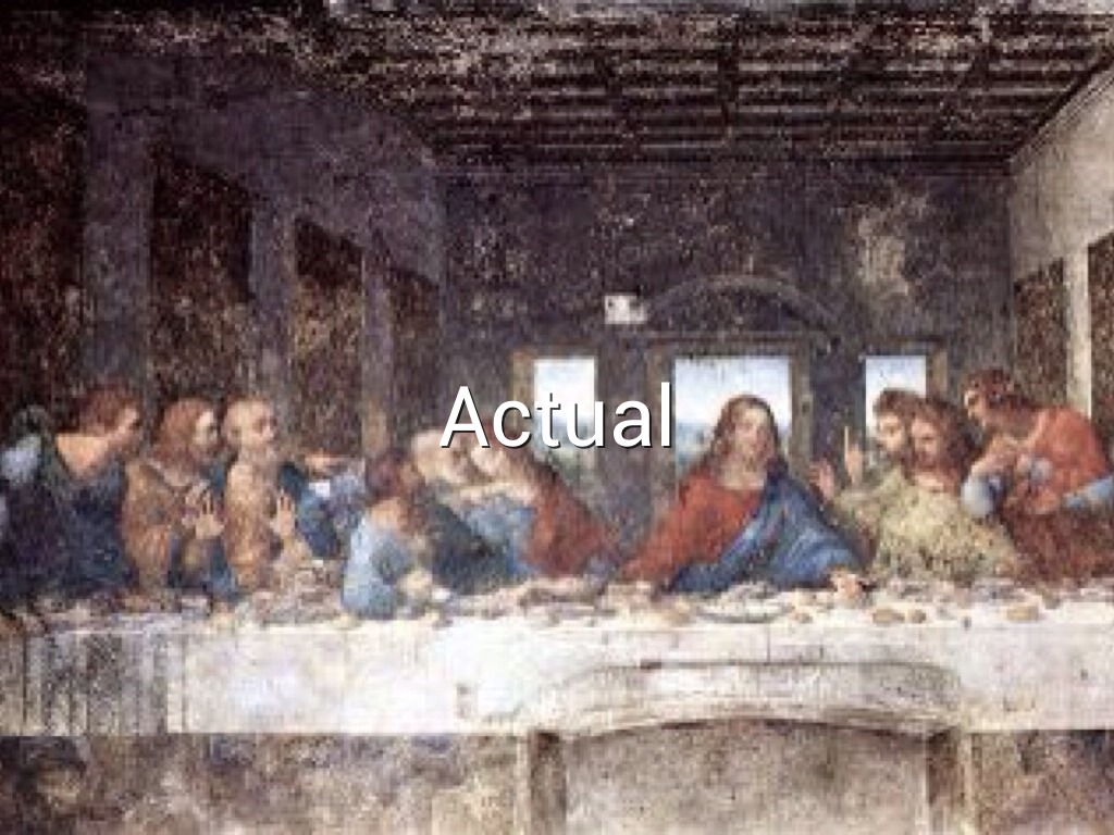 This as you can see is more modern and much clearer than the actual version of The Last Supper this is because the person that painted this had more modern ways of painting it than Leonardo had such as: New styles of paints, tracing, laser etching ect...