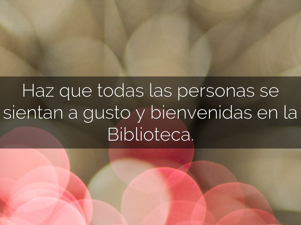 Haz que todas las personas se sientan a gusto y bienvenidas en la Biblioteca.
