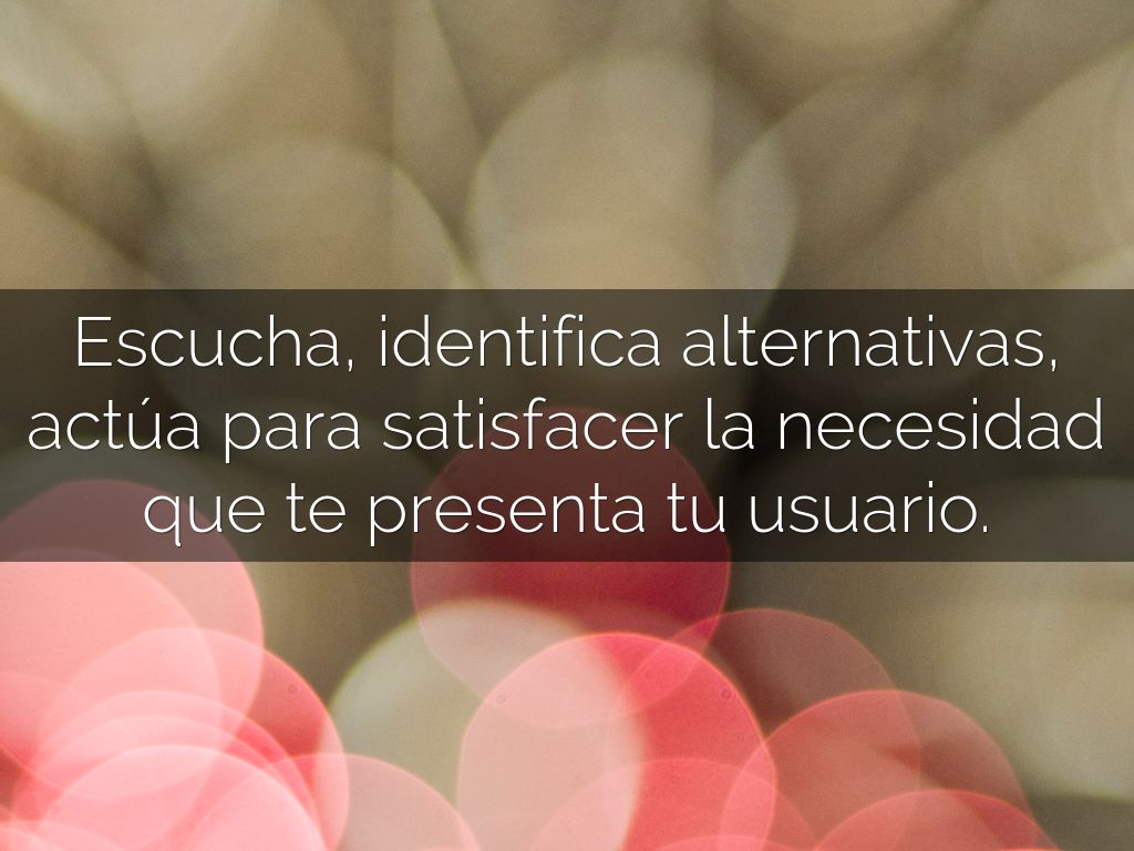 Escucha, identifica alternativas, actúa para satisfacer la necesidad que te presenta tu usuario.