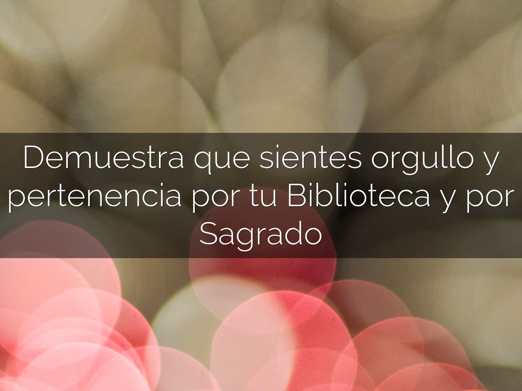 Demuestra que sientes orgullo y pertenencia por tu Biblioteca y por Sagrado