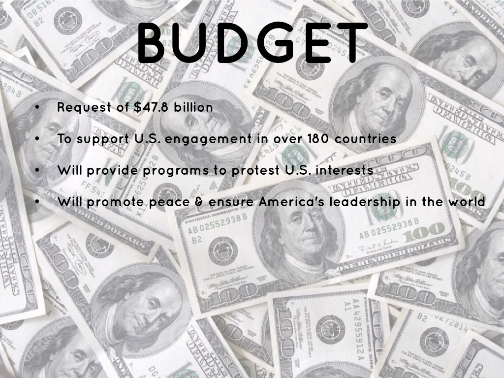 The Bureau of Budget and Planning (BP, formerly the Bureau of Resource Management) carries out the principal responsibilities of preparing and submitting the Department's budget requests, managing the Department's operational resource requirements, and ensuring that operational planning and performance management is synchronized with the Department's resource requirements. BP also coordinates with the Office of U.S. Foreign Assistance Resources in developing policies, plans, and programs to achieve foreign policy goals.