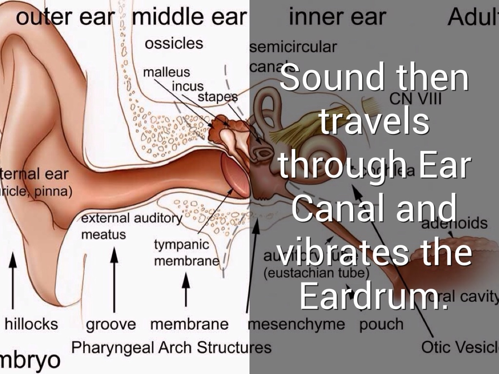 Sound then travels through Ear Canal and vibrates the Eardrum.