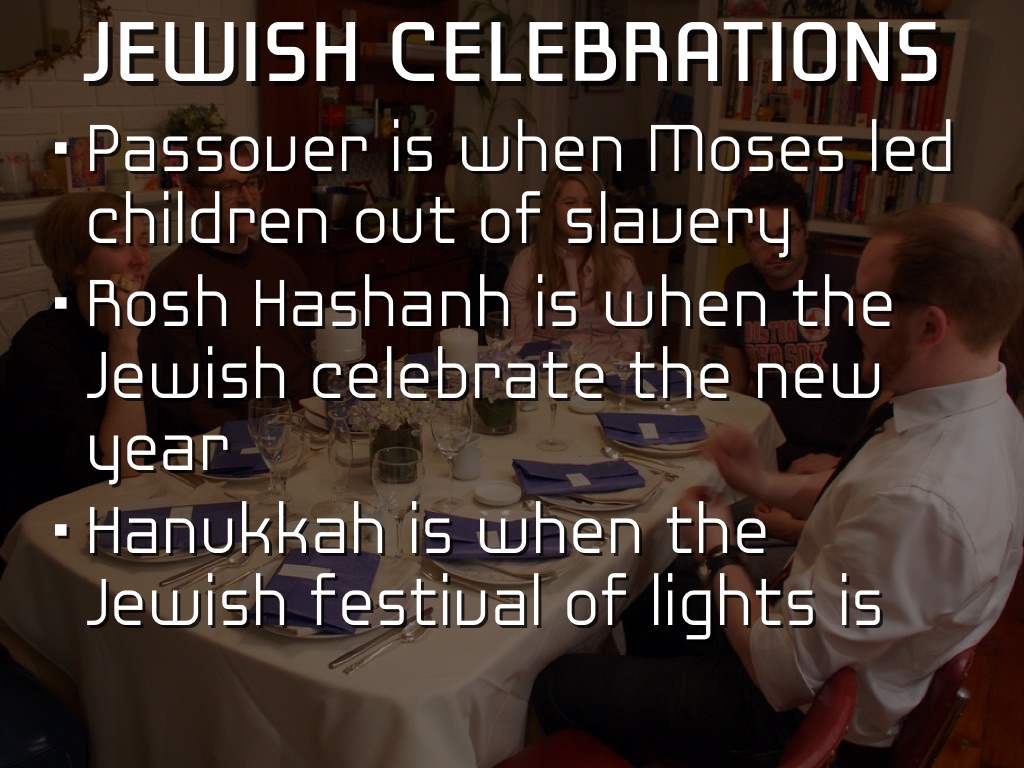 • Rosh Hashanh is when the Jewish celebrate the new year