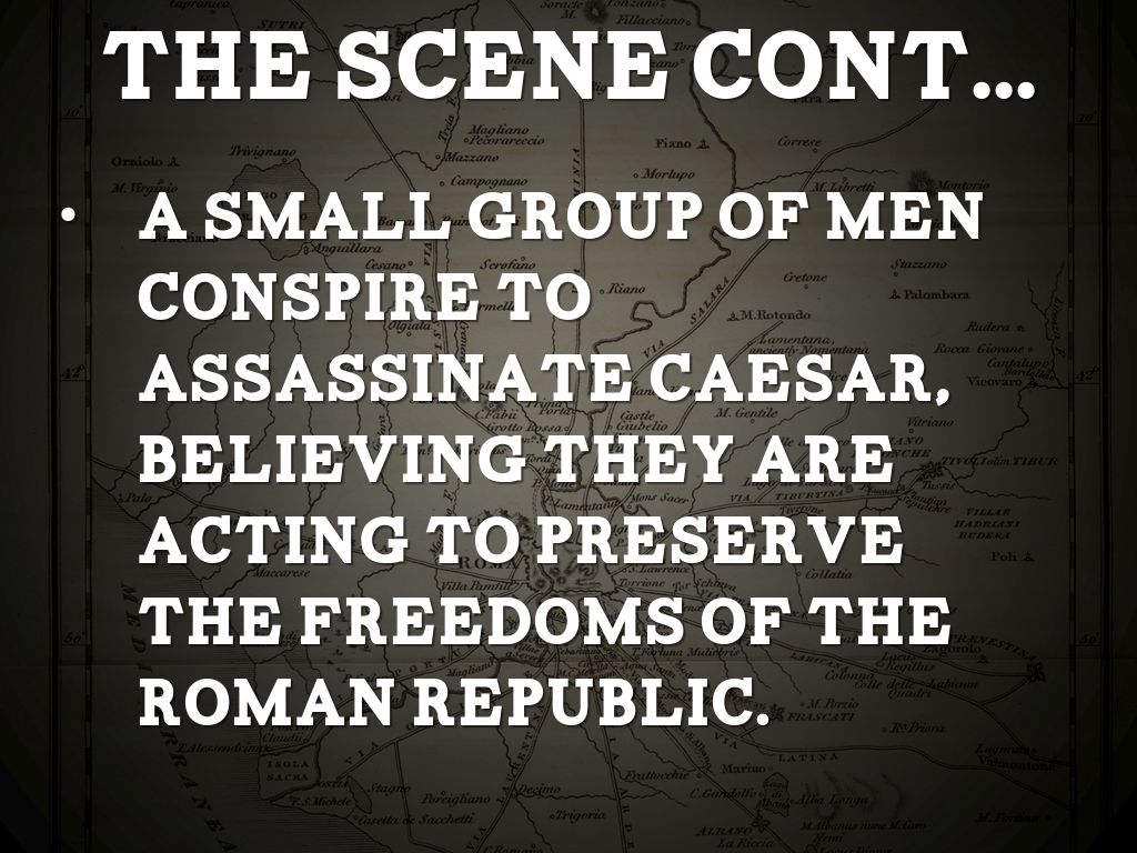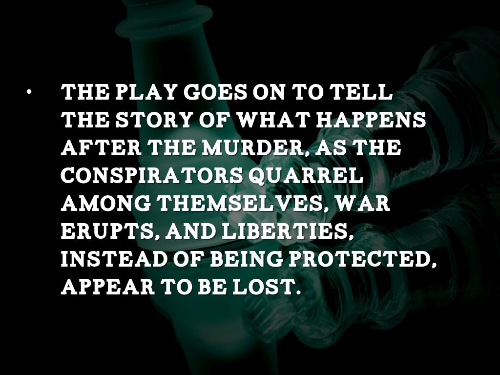 The play goes on to tell the story of what happens after the murder, as the conspirators quarrel among themselves, war erupts, and liberties, instead of being protected, appear to be lost.