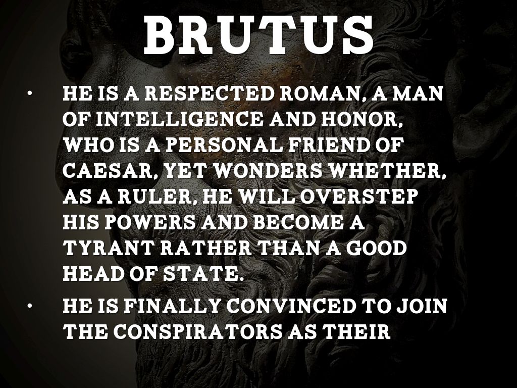 He is a respected Roman, a man of intelligence and honor, who is a personal friend of Caesar, yet wonders whether, as a ruler, he will overstep his powers and become a tyrant rather than a good head of state.