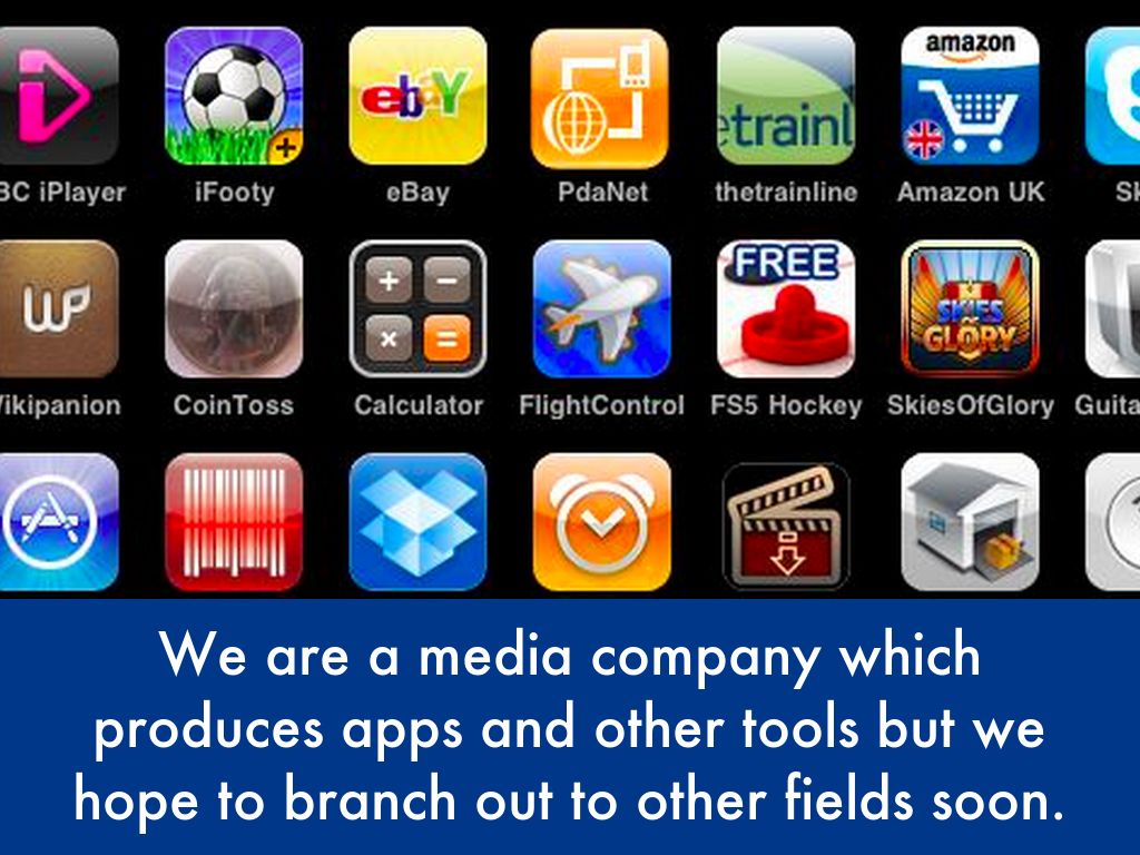We are a media company which produces apps and other tools but we hope to branch out to other fields soon.