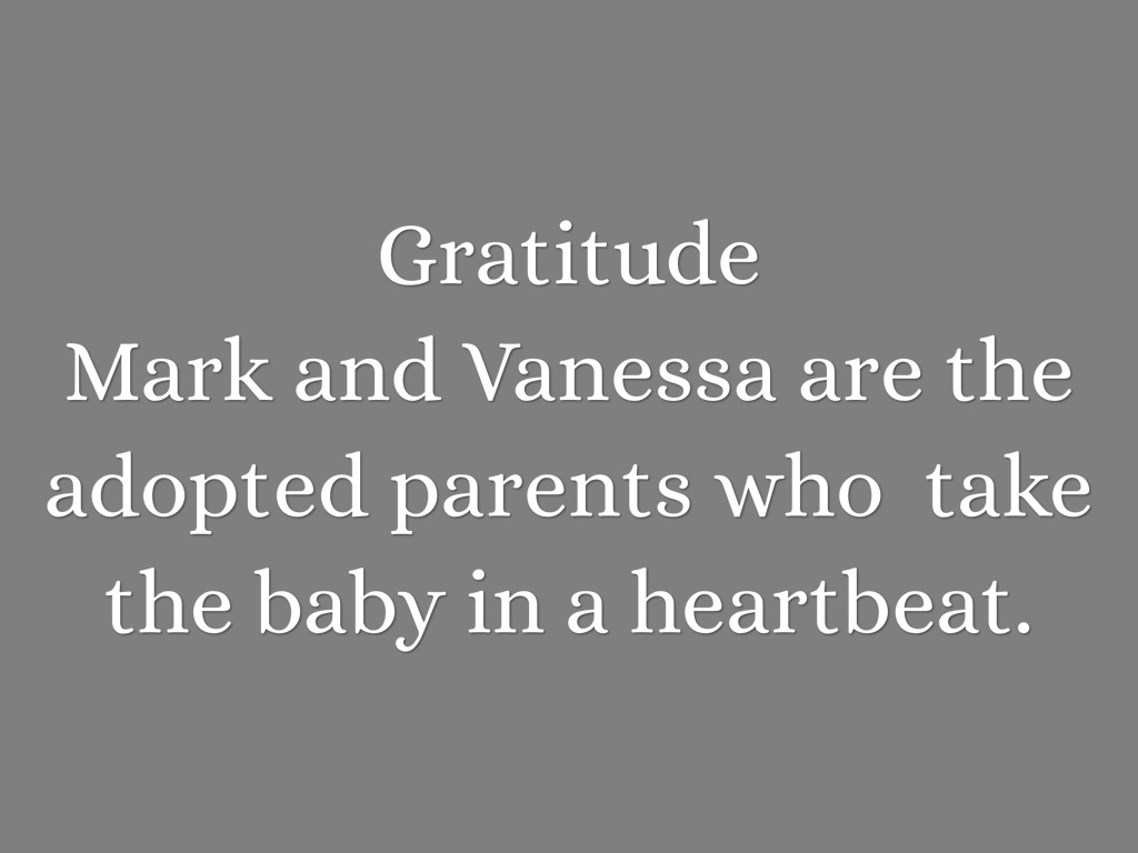 Mark and Vanessa are the adopted parents who take the baby in a heartbeat.