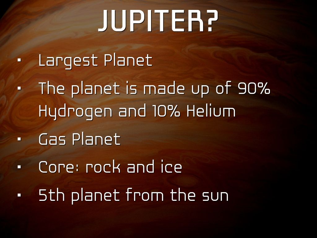 • The planet is made up of 90% Hydrogen and 10% Helium