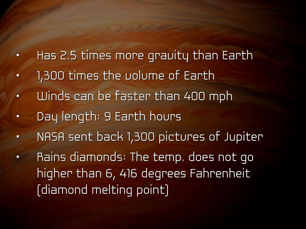 • Rains diamonds: The temp. does not go higher than 6, 416 degrees Fahrenheit (diamond melting point)