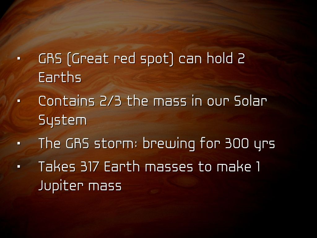 • Takes 317 Earth masses to make 1 Jupiter mass