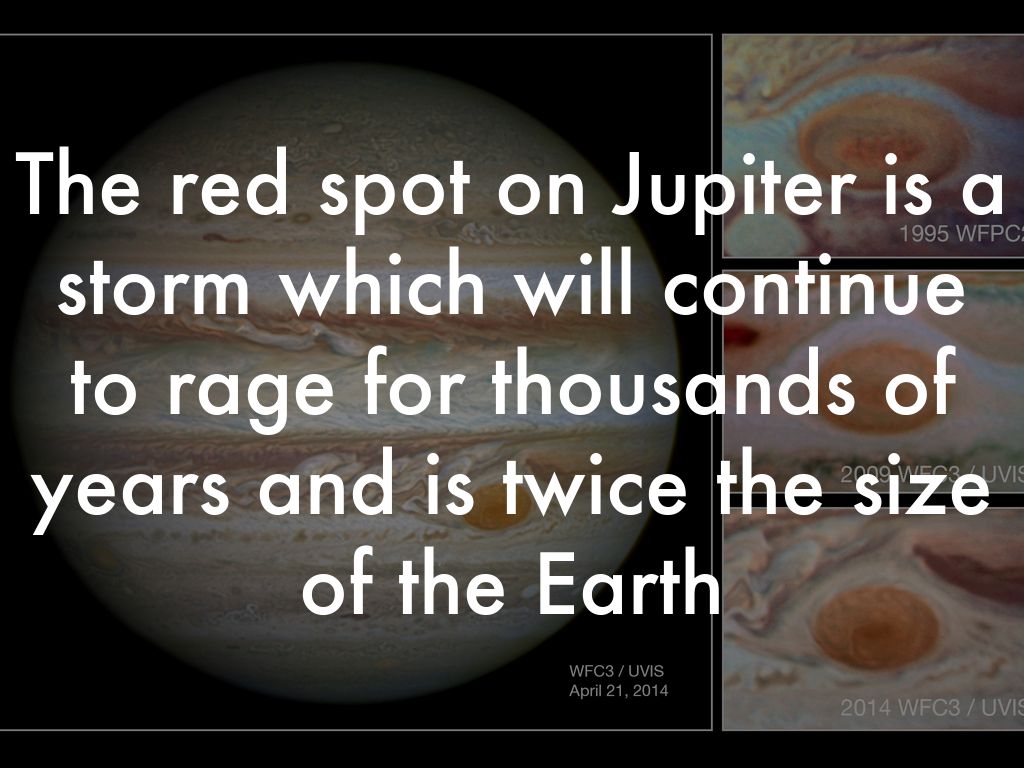 The red spot on Jupiter is a storm which will continue to rage for thousands of years and is twice the size of the Earth