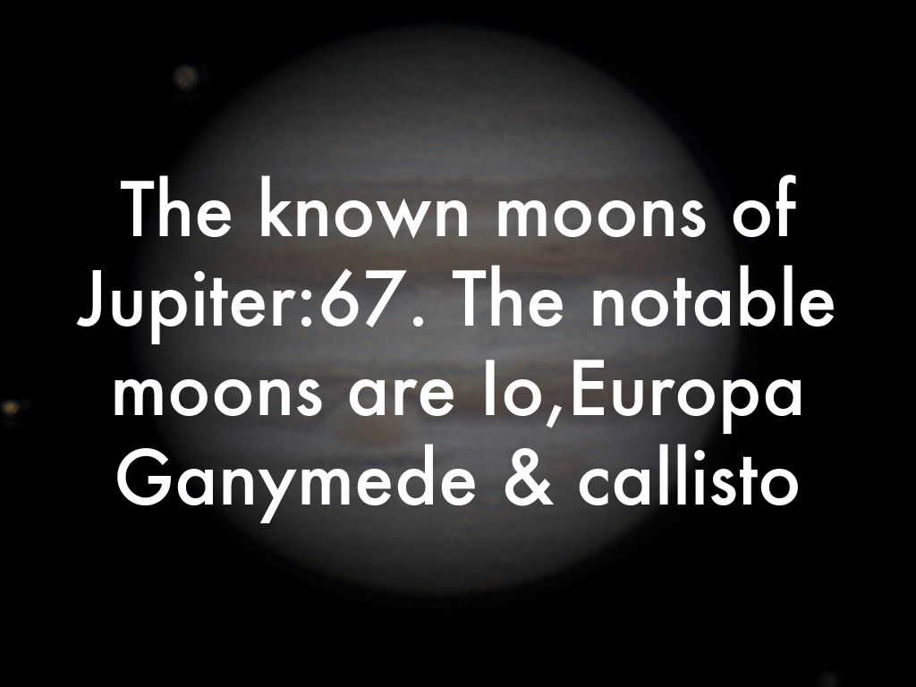 The known moons of Jupiter:67. The notable moons are Io,Europa Ganymede & callisto