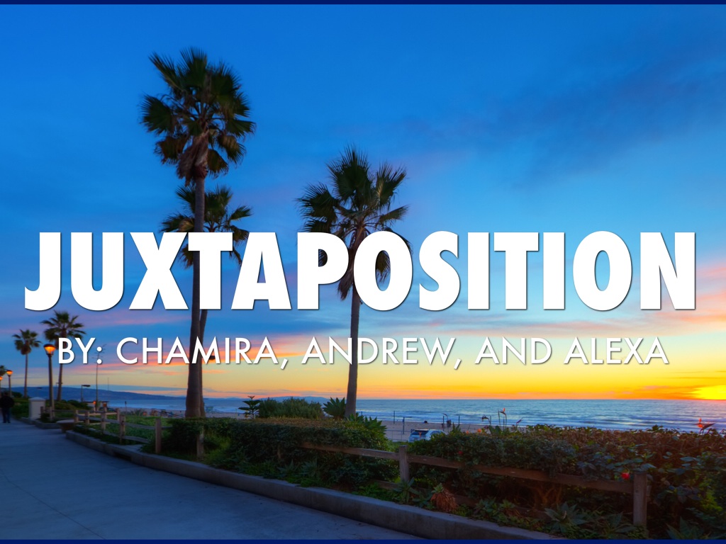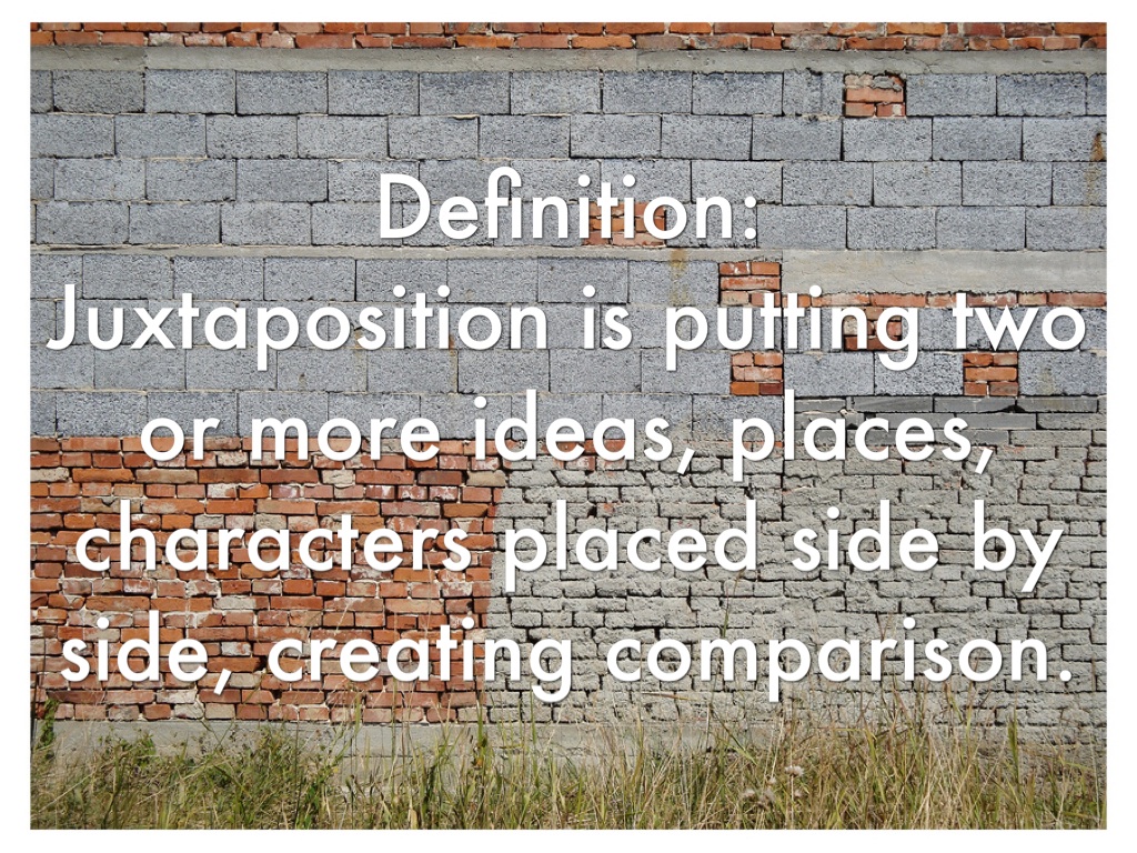 Juxtaposition is putting two or more ideas, places, characters placed side by side, creating comparison.