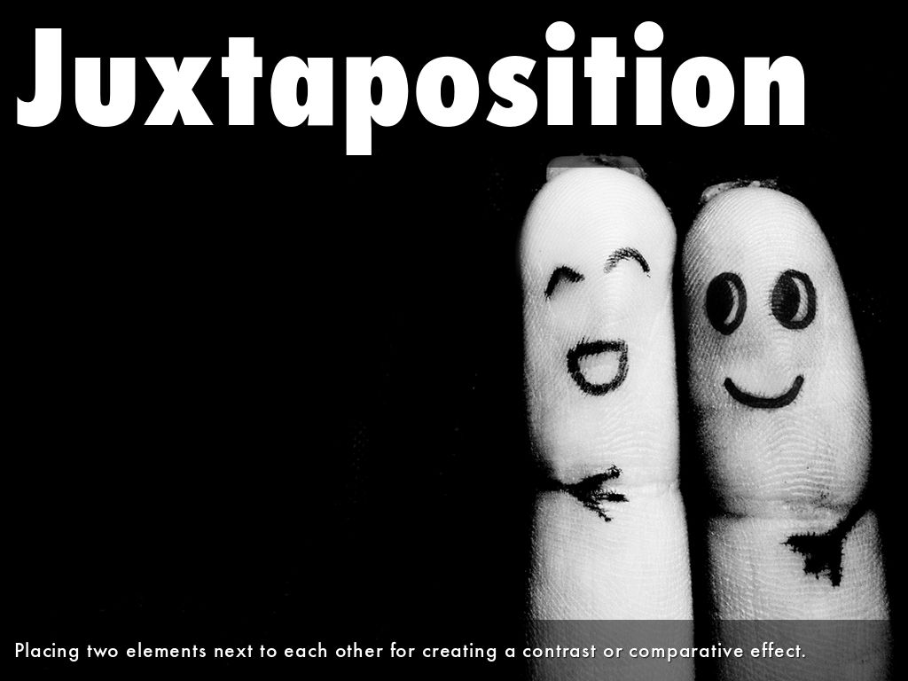 Placing two elements next to each other for creating a contrast or comparative effect.