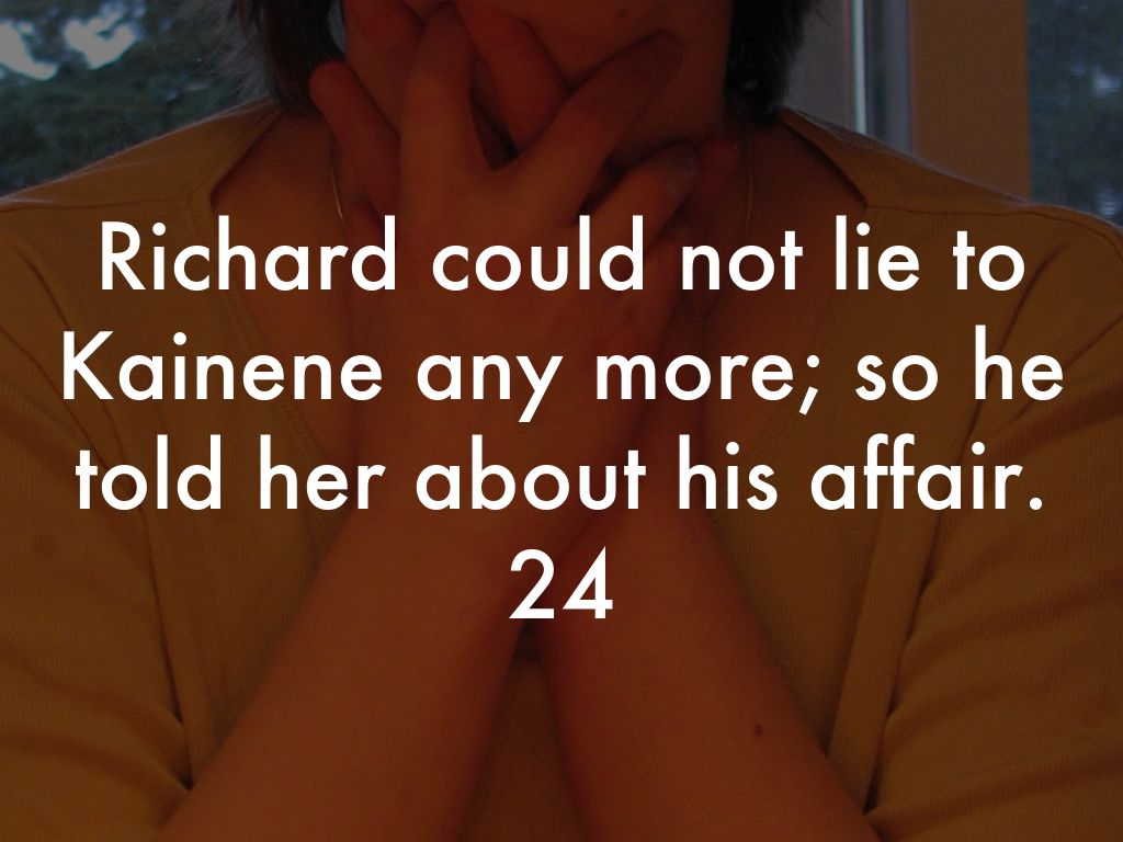 Richard could not lie to Kainene any more; so he told her about his affair.