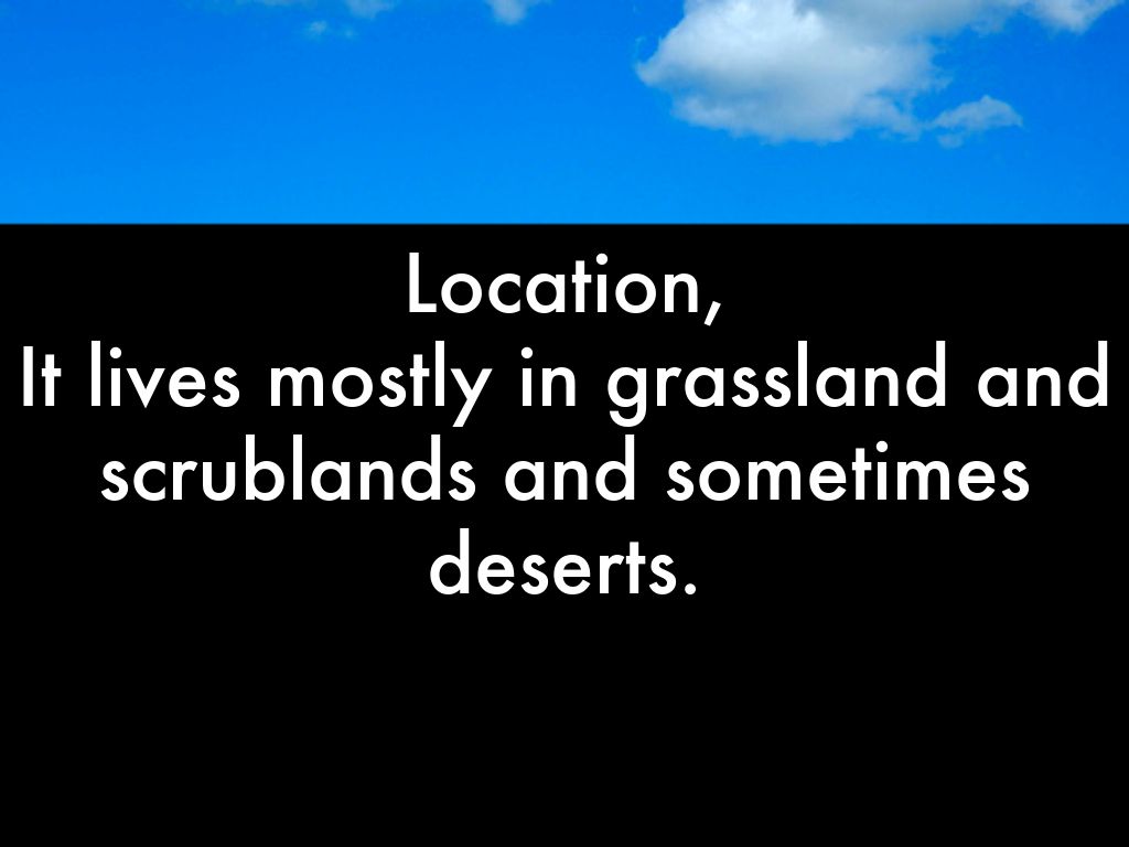 It lives mostly in grassland and scrublands and sometimes deserts.