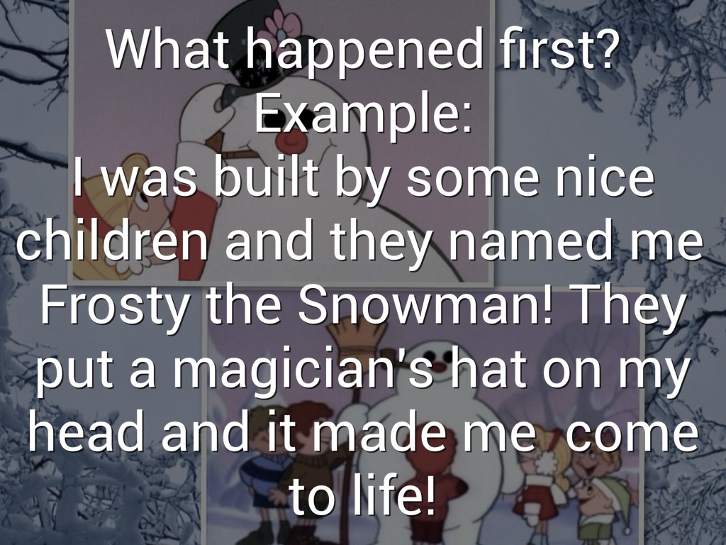 I was built by some nice children and they named me Frosty the Snowman! They put a magician's hat on my head and it made me come to life!