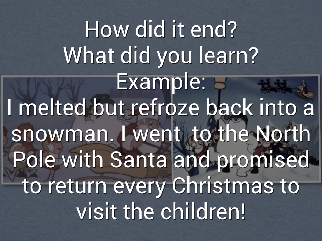 I melted but refroze back into a snowman. I went to the North Pole with Santa and promised to return every Christmas to visit the children!