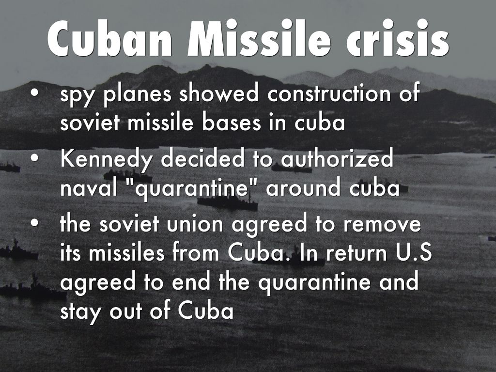 the soviet union agreed to remove its missiles from Cuba. In return U.S agreed to end the quarantine and stay out of Cuba