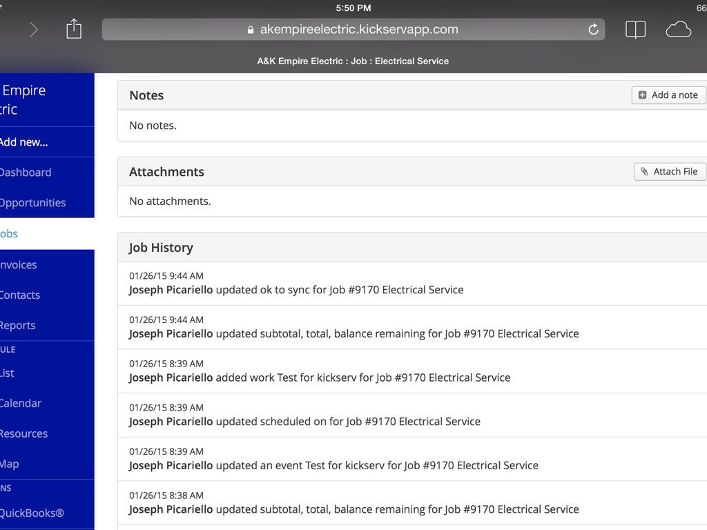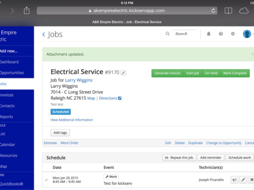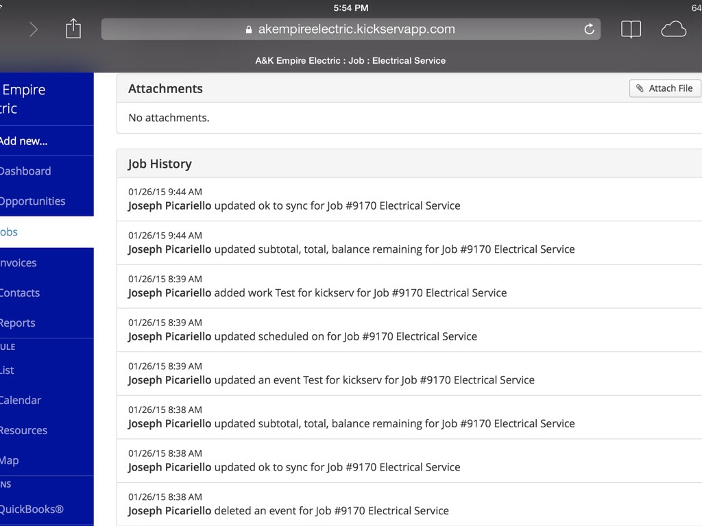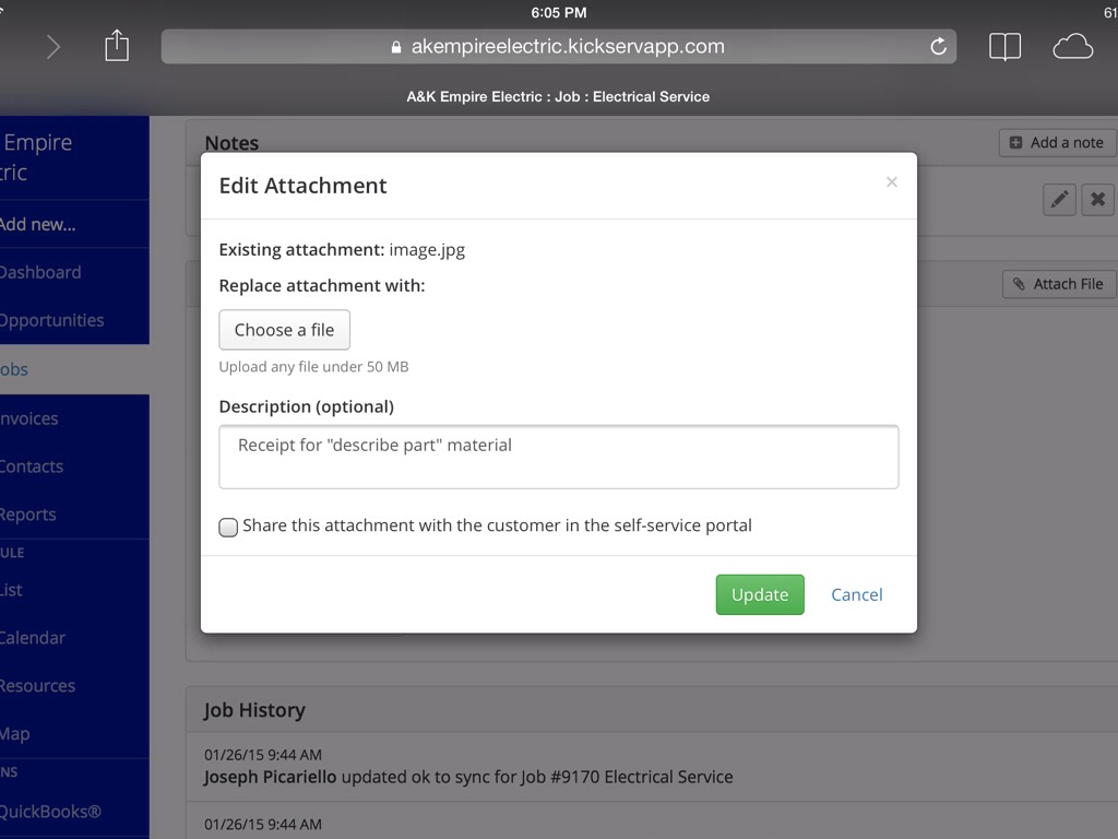 Once the "add attachment" icon is keyed the technician can add any attachments.