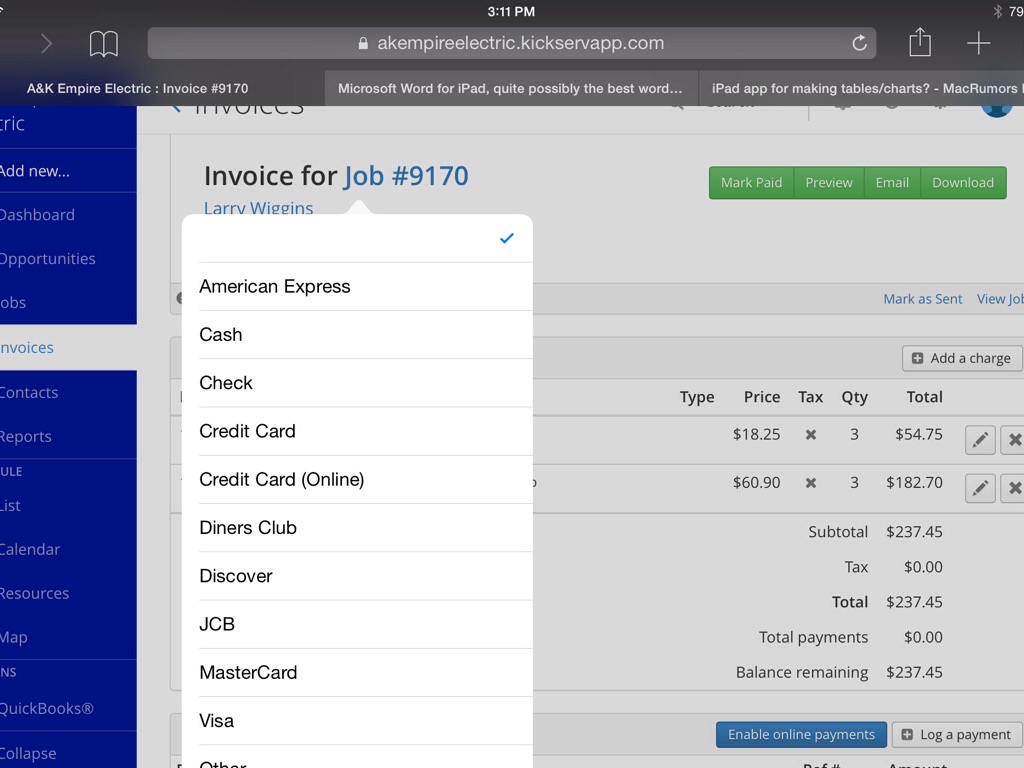 Note: ALL receipts for material, permits, and any billable item must be attached to the assignment and have a description as well.