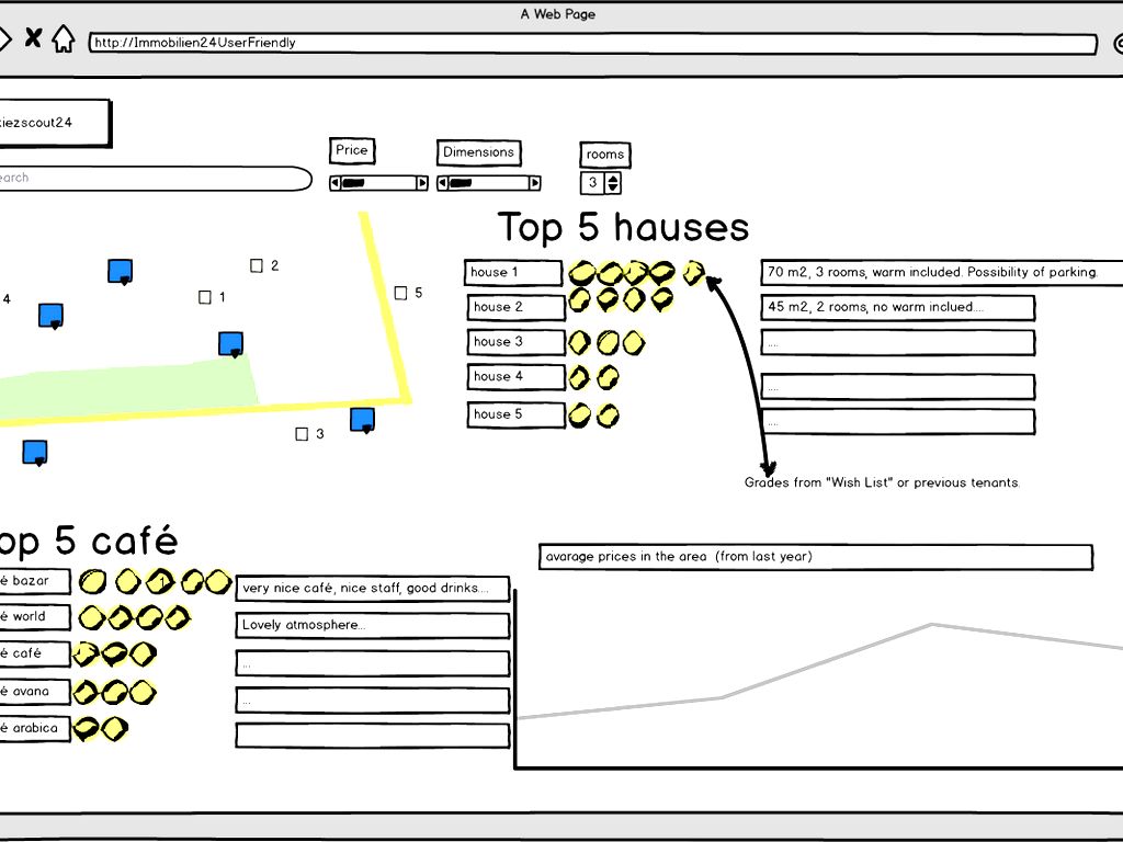 We decided to show just few info(as for example 5 best cases in a determined area or radius) taken form another source as a social network, we used Foursquare APIs