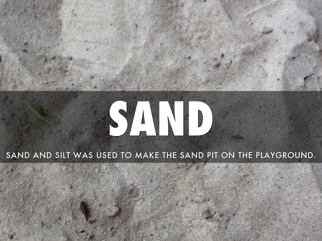 SAND AND SILT WAS USED TO MAKE THE SAND PIT ON THE PLAYGROUND.