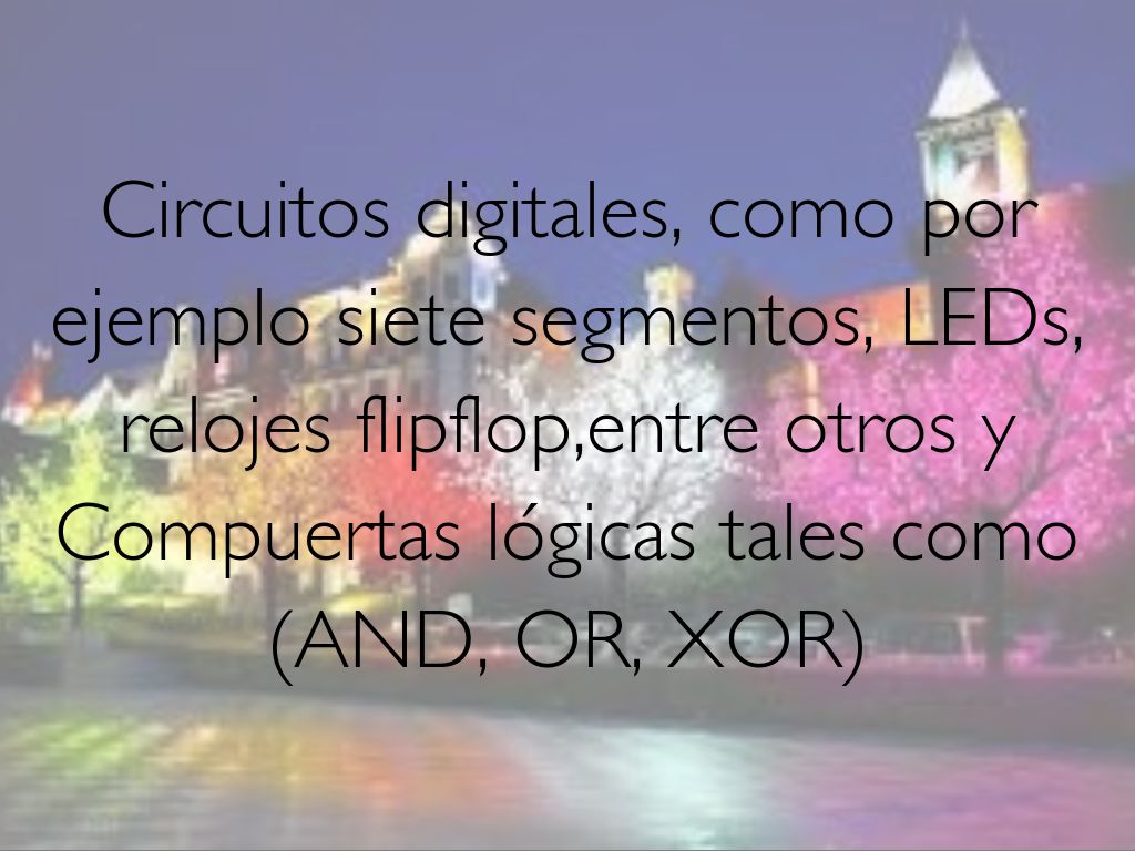 Circuitos digitales, como por ejemplo siete segmentos, LEDs, relojes flipflop,entre otros y