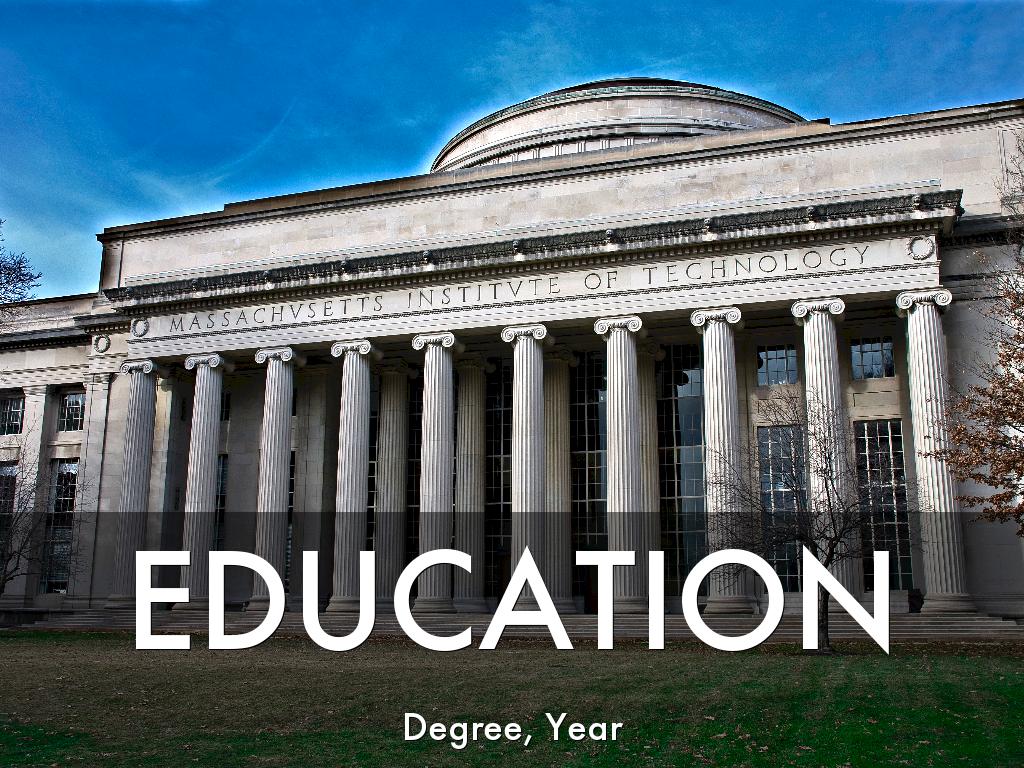Again, you can choose how much detail you want to include (year is optional), or add multiple slides to highlight different degrees, but be sure to call out your academic achievements.