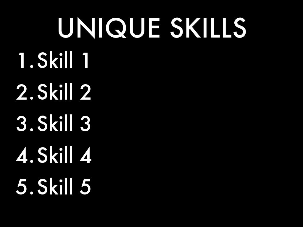 What are 3-5 unique skills that you bring to the table? You can highlight them here. (Bonus tip: If you're on LinkedIn, review what your contacts have endorsed you for to get ideas.)