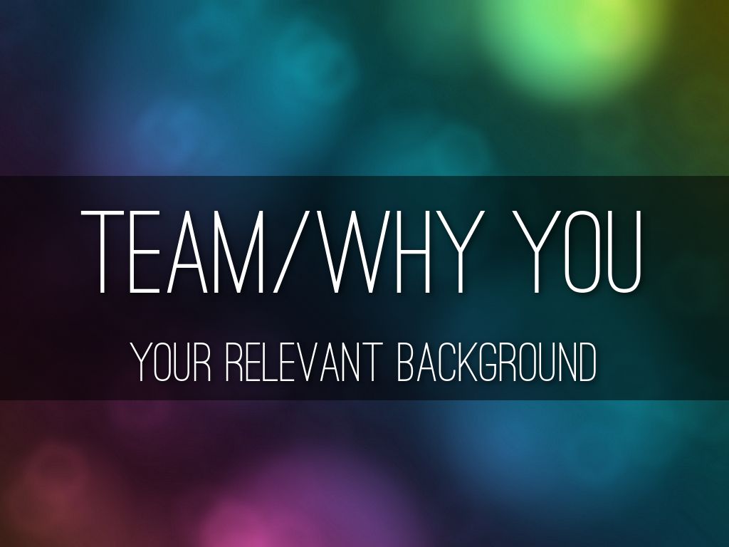What have you done in the past that has prepared you to take on this new challenge? Why are you well-suited to succeed in this venture? How will others help you, and what relevant skills/experience will they bring to the project? How will you go about building your team from here and adding necessary expertise?