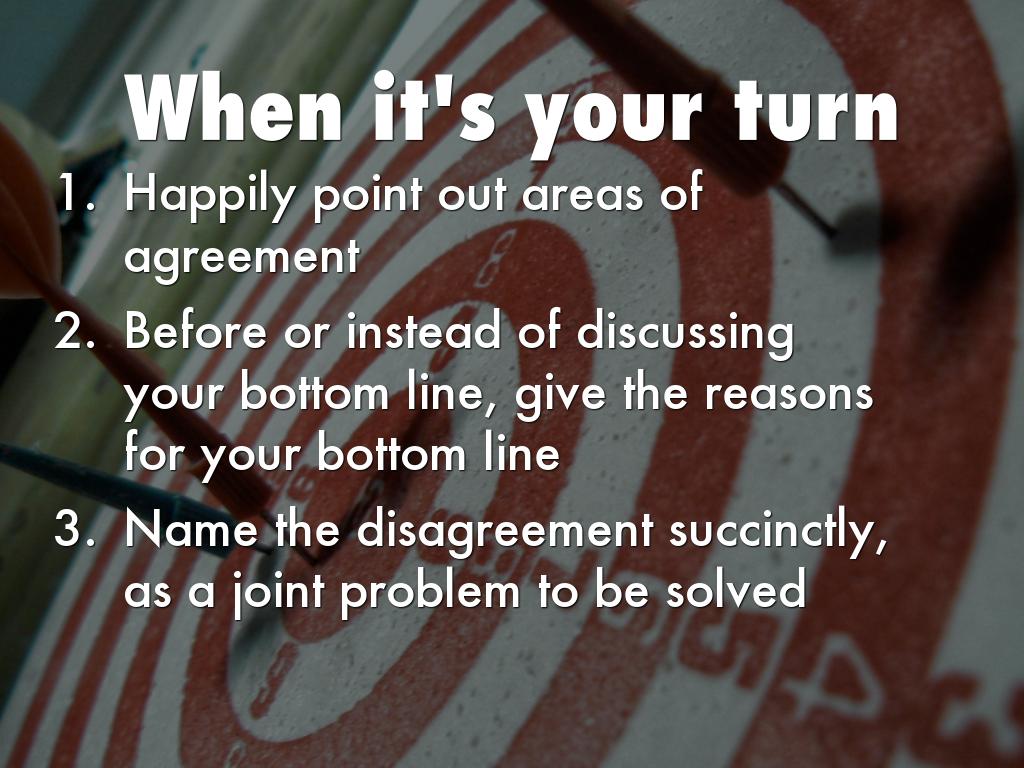 • Before or instead of discussing your bottom line, give the reasons for your bottom line