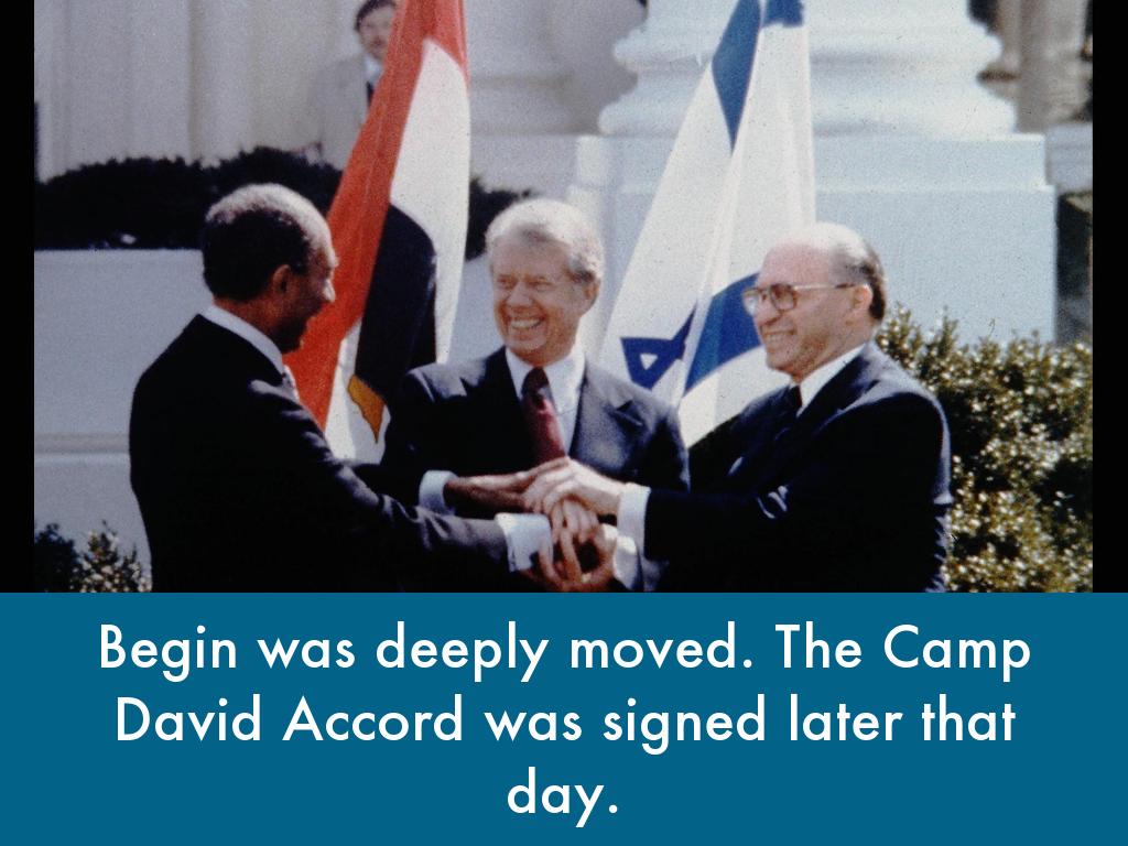 Begin was deeply moved. The Camp David Accord was signed later that day.