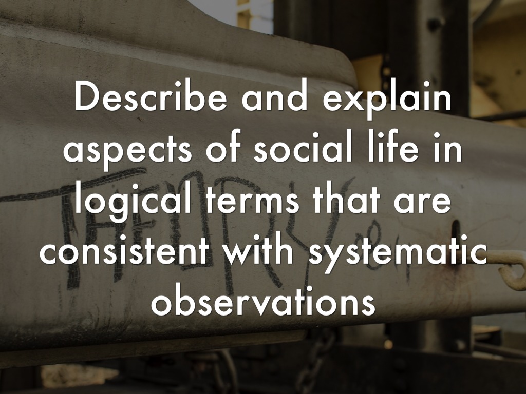 Describe and explain aspects of social life in logical terms that are consistent with systematic observations