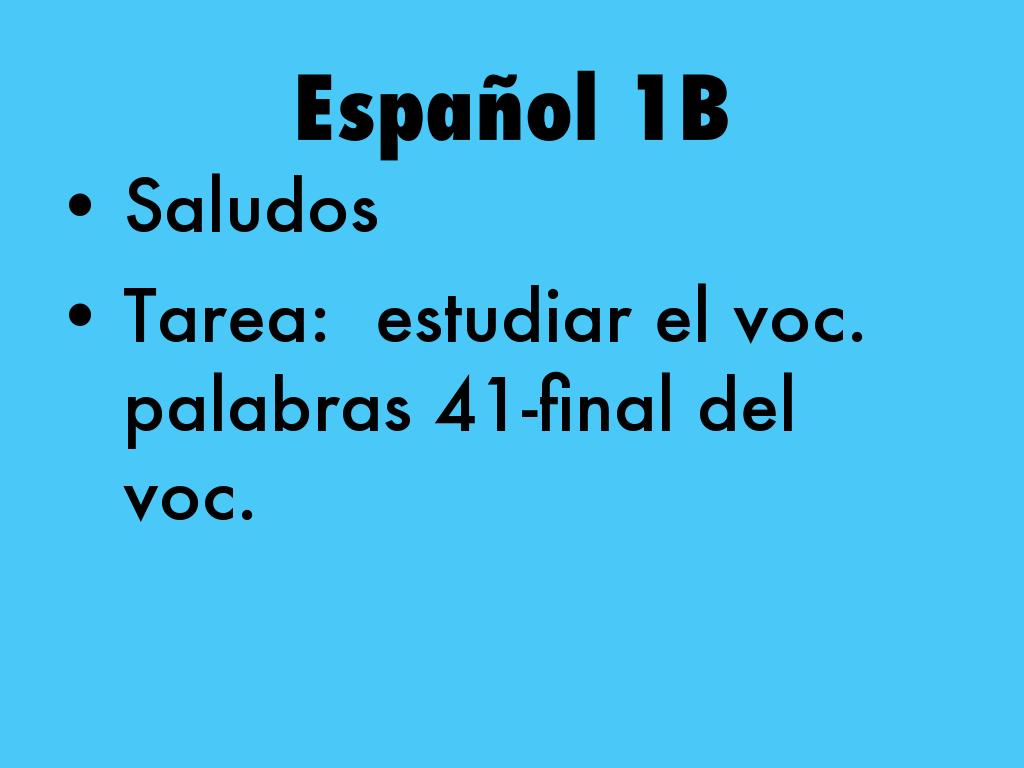 Tarea: estudiar el voc. palabras 41-final del voc. (cubano-¡Oye!)