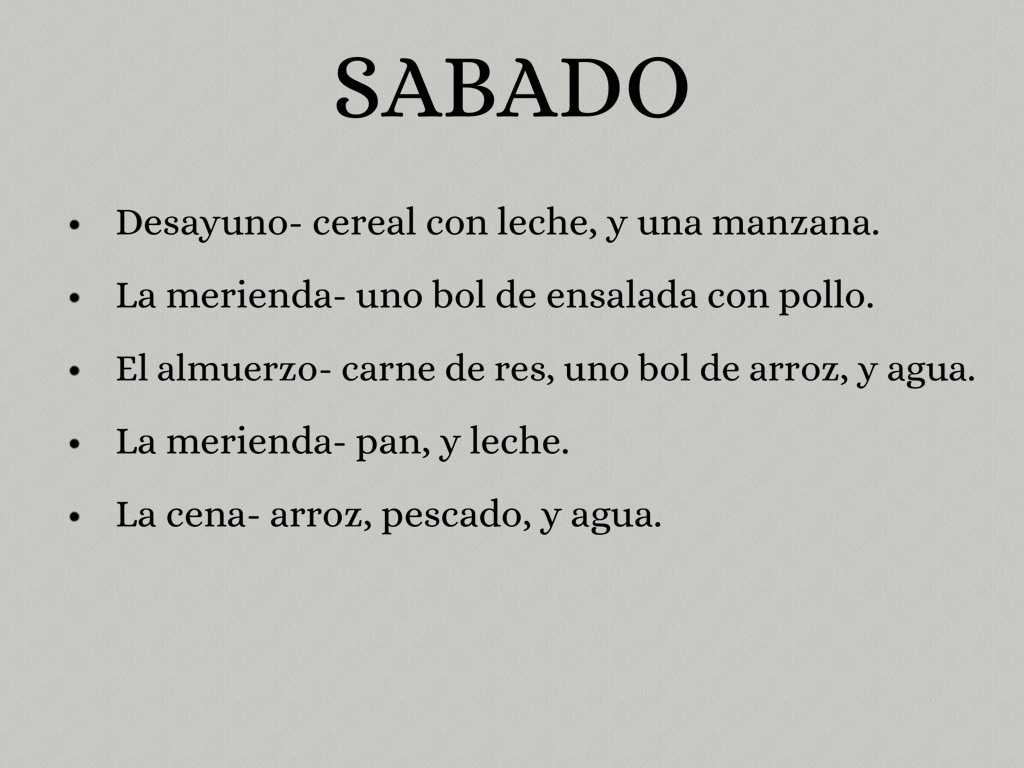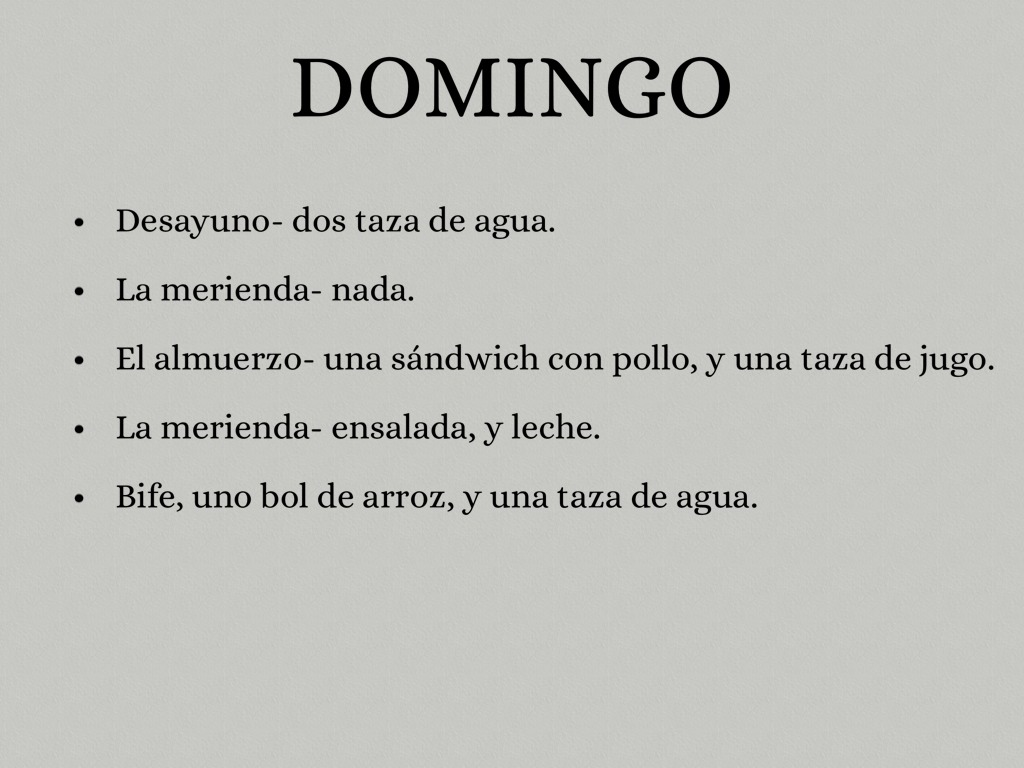 La cena- Uno bol de arroz, tocino, y tres taza de agua.