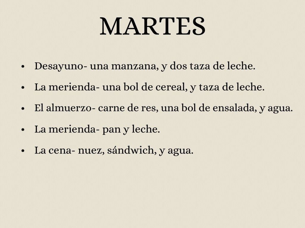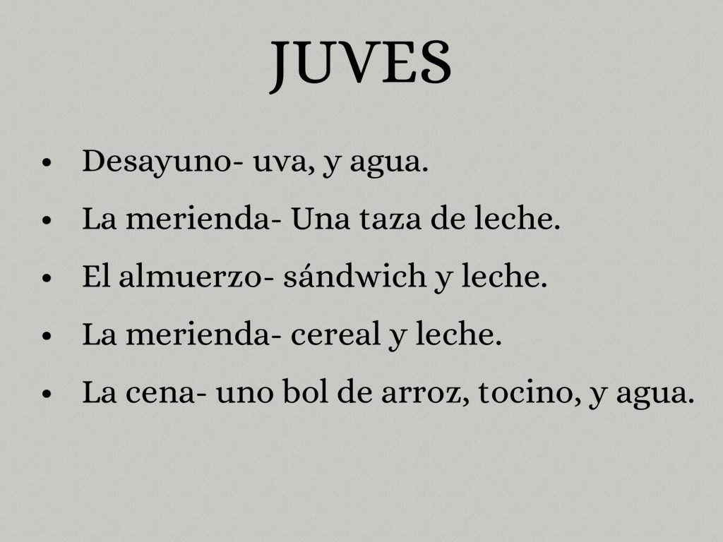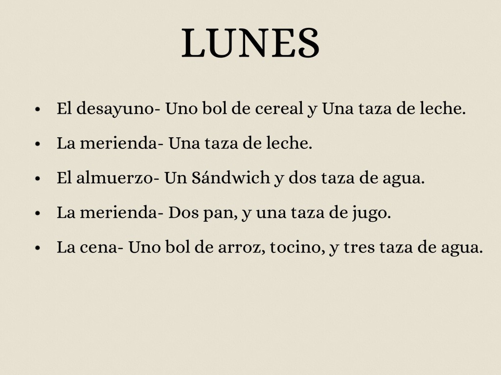 El desayuno- Uno bol de cereal y Una taza de leche.