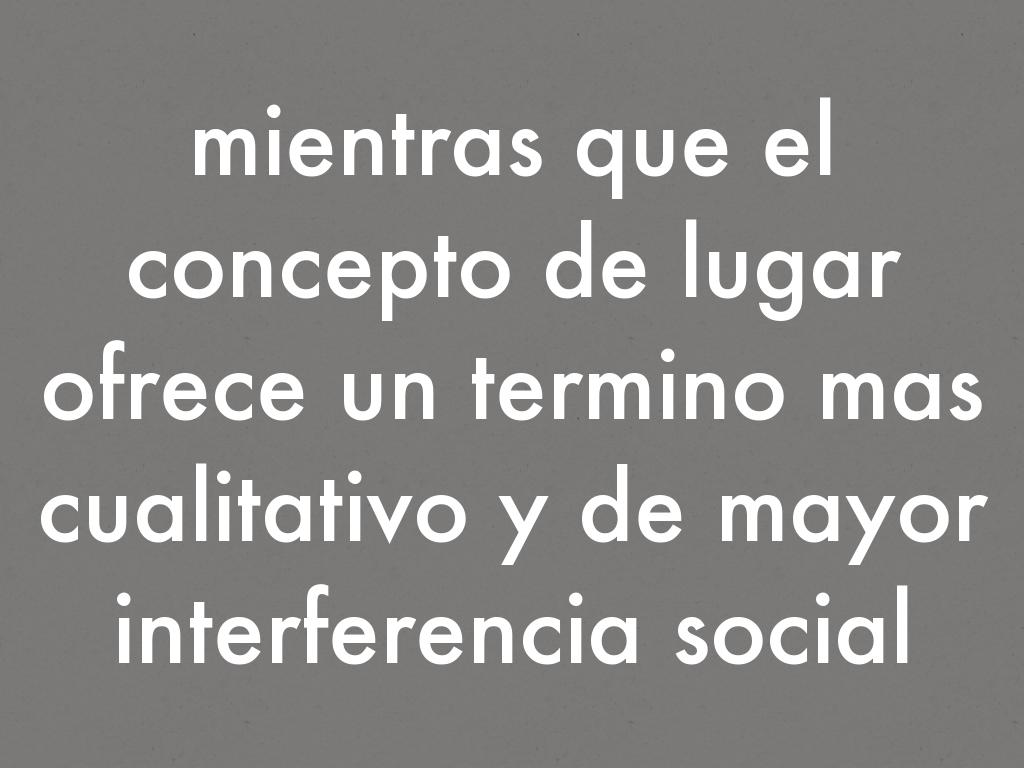 mientras que el concepto de lugar ofrece un termino mas cualitativo y de mayor interferencia social