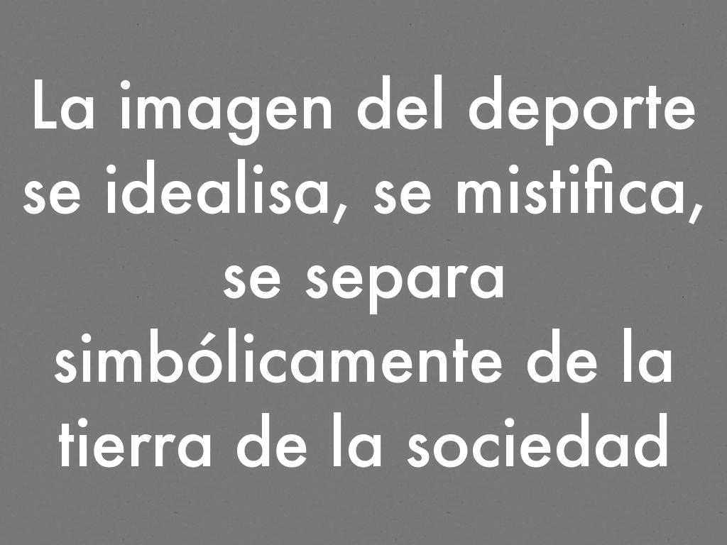 La imagen del deporte se idealisa, se mistifica, se separa simbólicamente de la tierra de la sociedad