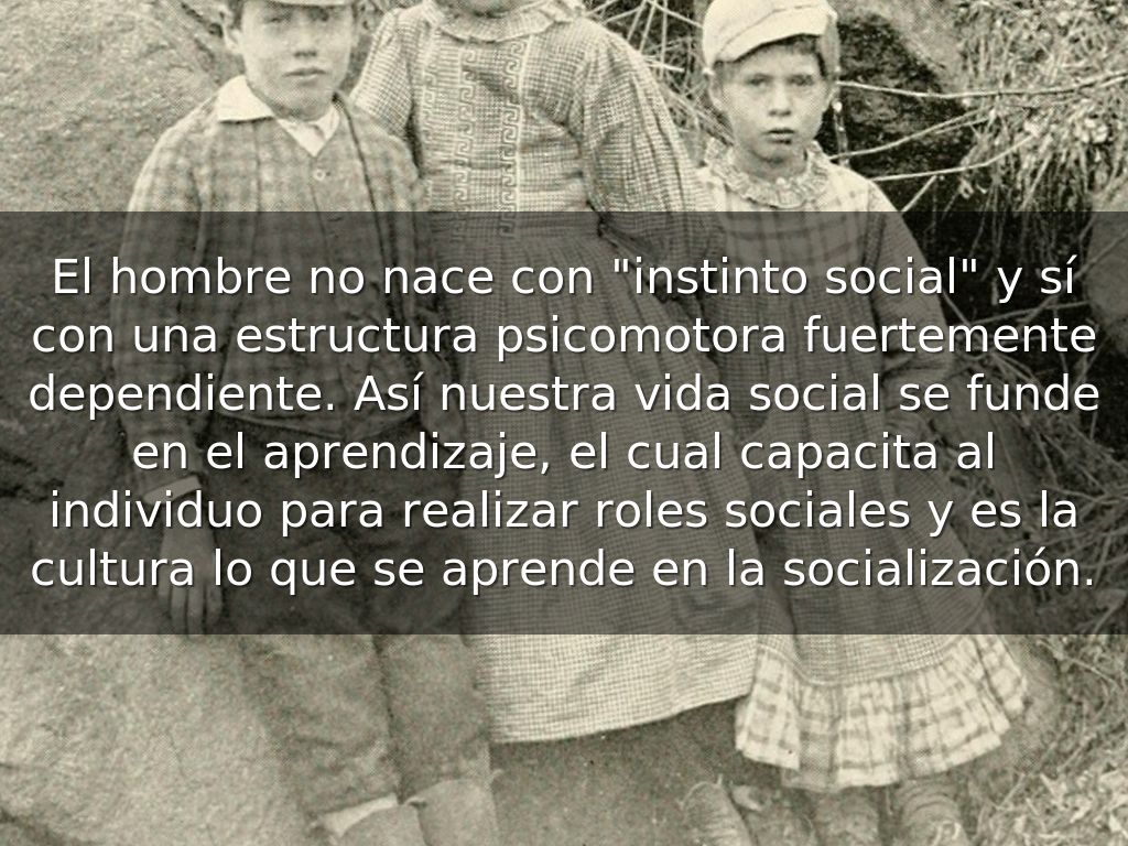 El hombre no nace con "instinto social" y sí con una estructura psicomotora fuertemente dependiente. Así nuestra vida social se funde en el aprendizaje, el cual capacita al individuo para realizar roles sociales y es la cultura lo que se aprende en la socialización.
