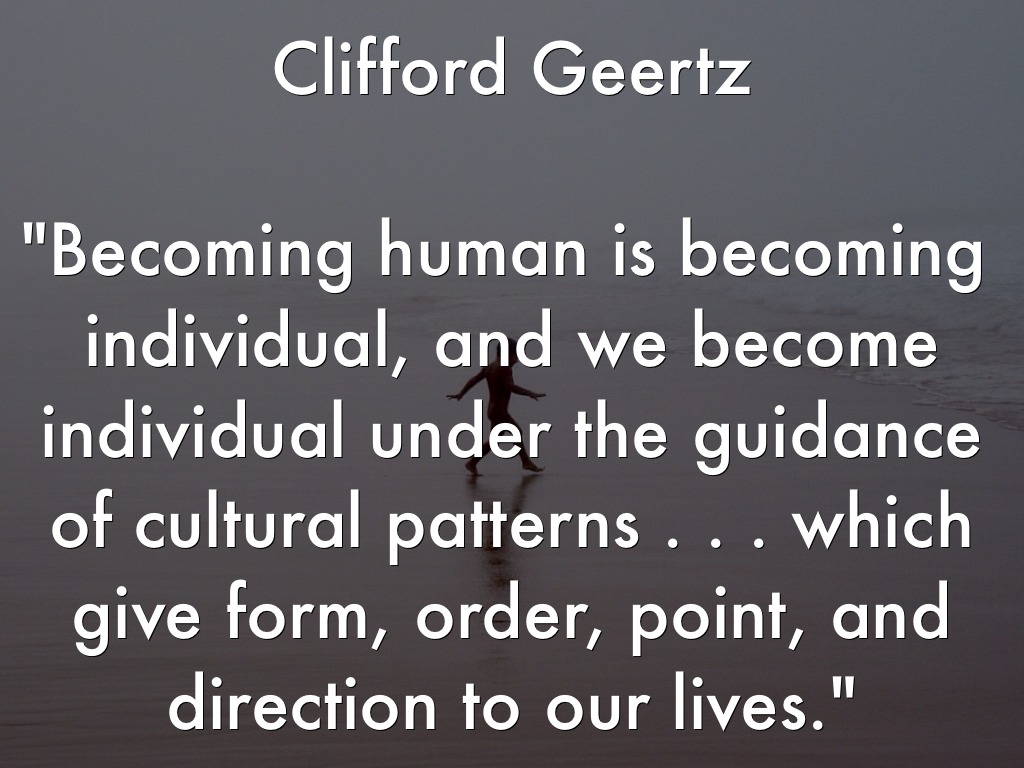 "Becoming human is becoming individual, and we become individual under the guidance of cultural patterns . . . which give form, order, point, and direction to our lives."