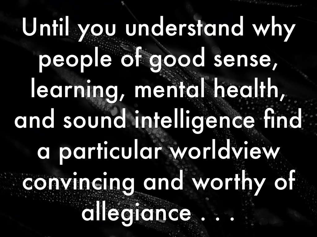 Until you understand why people of good sense, learning, mental health, and sound intelligence find a particular worldview convincing and worthy of allegiance . . .