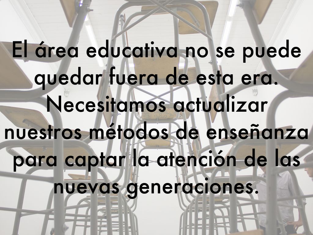 El área educativa no se puede quedar fuera de esta era. Necesitamos actualizar nuestros métodos de enseñanza para captar la atención de las nuevas generaciones.