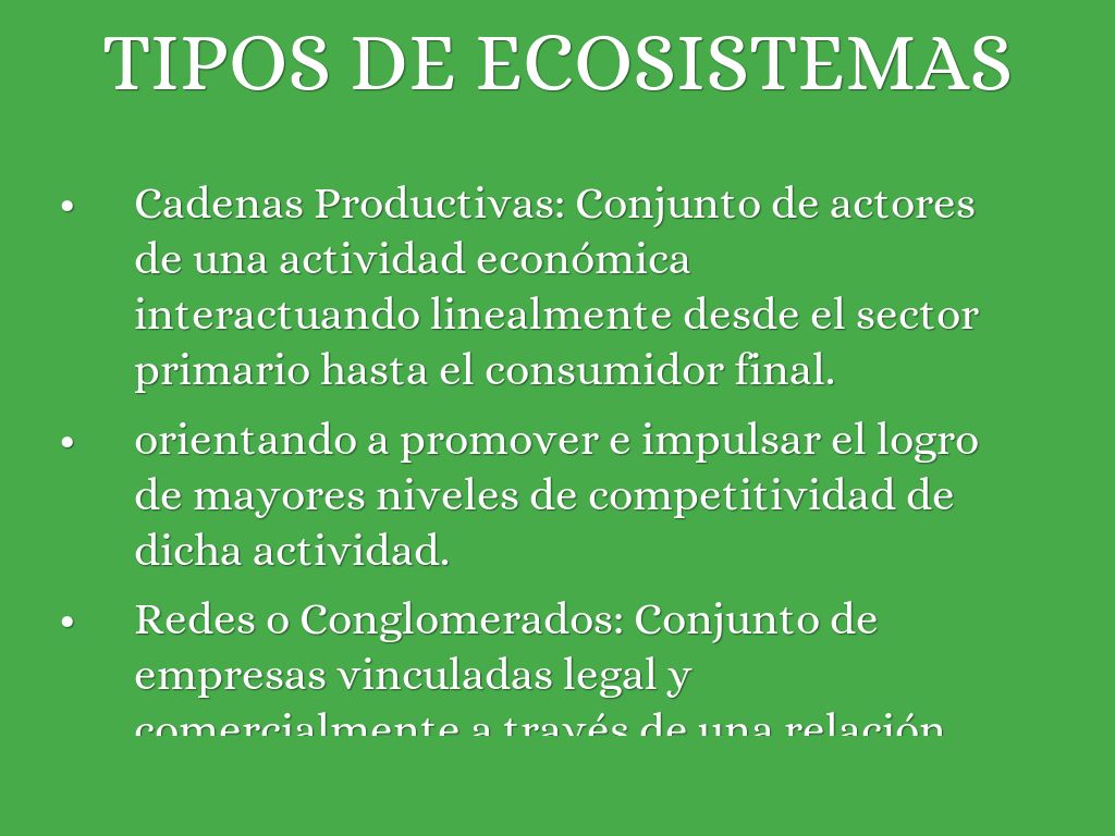 Cadenas Productivas: Conjunto de actores de una actividad económica interactuando linealmente desde el sector primario hasta el consumidor final.